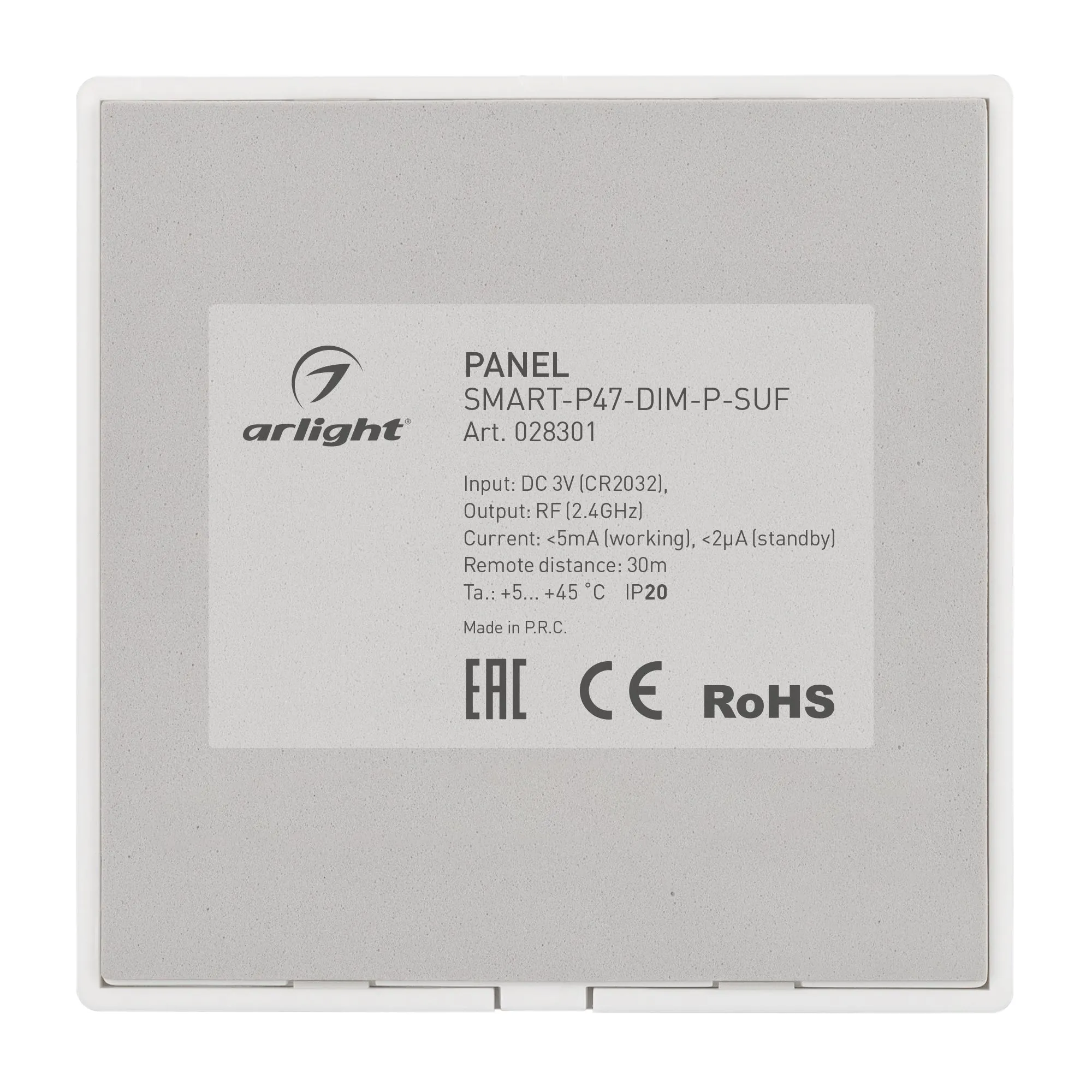 Arlight 028301 Панель SMART-P47-DIM-P-SUF (3V, 2 зоны, Knob, 2.4G) (Arlight, Пластик) - ! УПАКОВКА СОСТОИТ ИЗ - 1 шт
