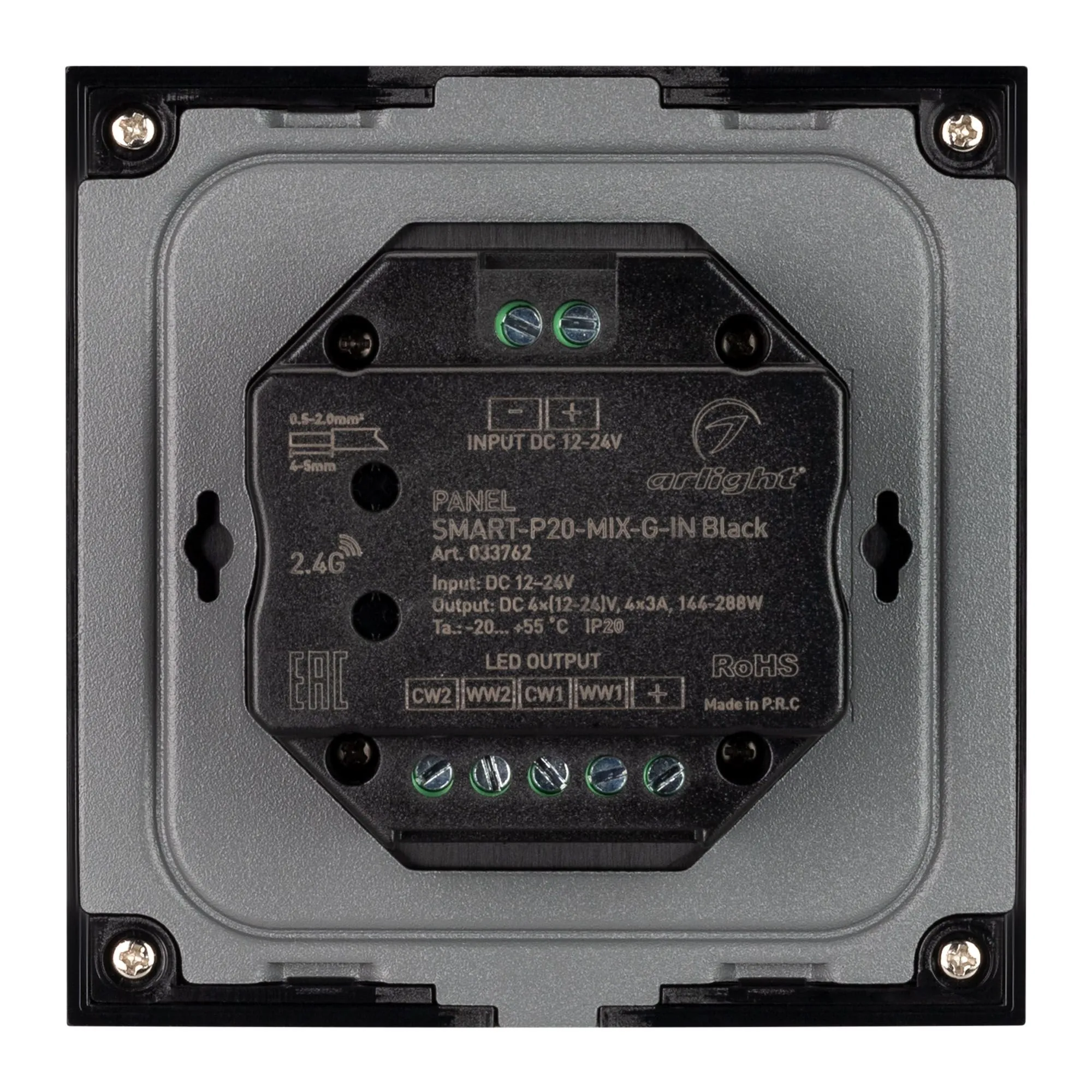 Arlight 033762 Панель SMART-P20-MIX-G-IN Black (12-24V, 4x3A, Rotary, 2.4G) (Arlight, IP20 Пластик, 5 лет) - ! УПАКОВКА СОСТОИТ ИЗ - 1 шт