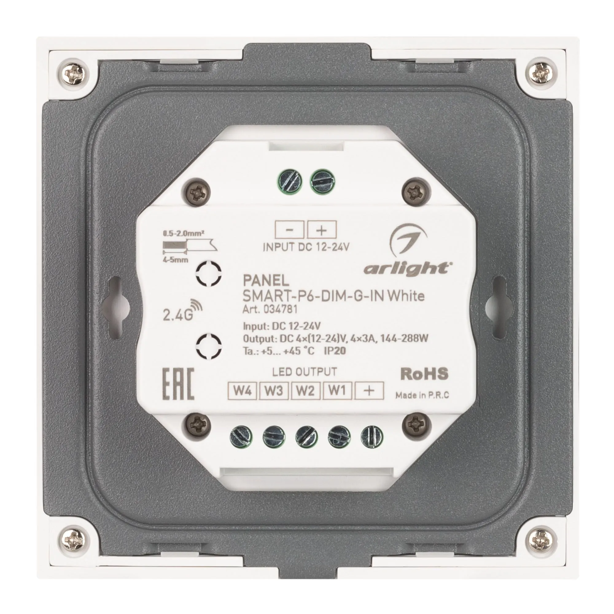 Arlight 034781 Панель SMART-P6-DIM-G-IN White (12-24V, 4x3A, Sens, 2.4G) (Arlight, IP20 Пластик, 5 лет) - ! УПАКОВКА СОСТОИТ ИЗ - 1 шт