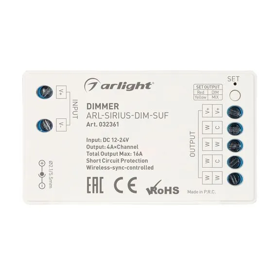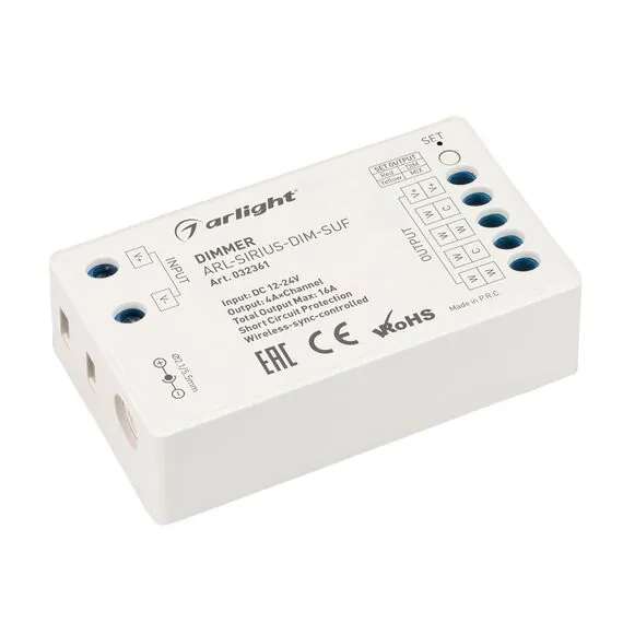 Arlight 032361 Диммер ARL-SIRIUS-DIM-SUF (12-24V, 4x4A, 2.4G) (Arlight, IP20 Пластик, 3 года) - ! УПАКОВКА СОСТОИТ ИЗ - 1 шт