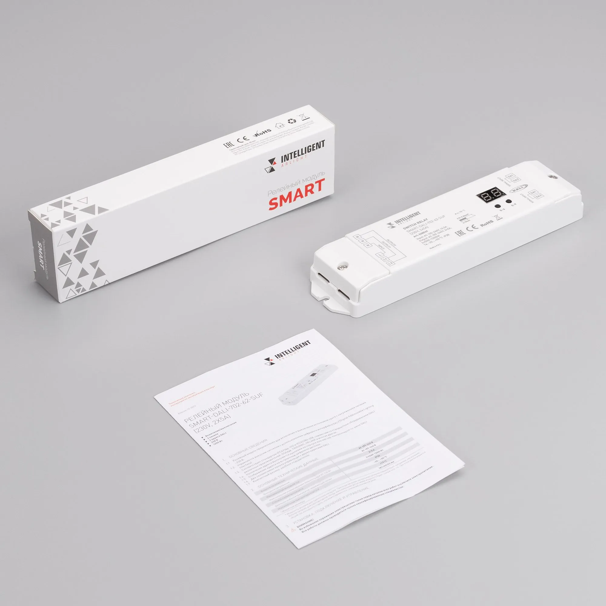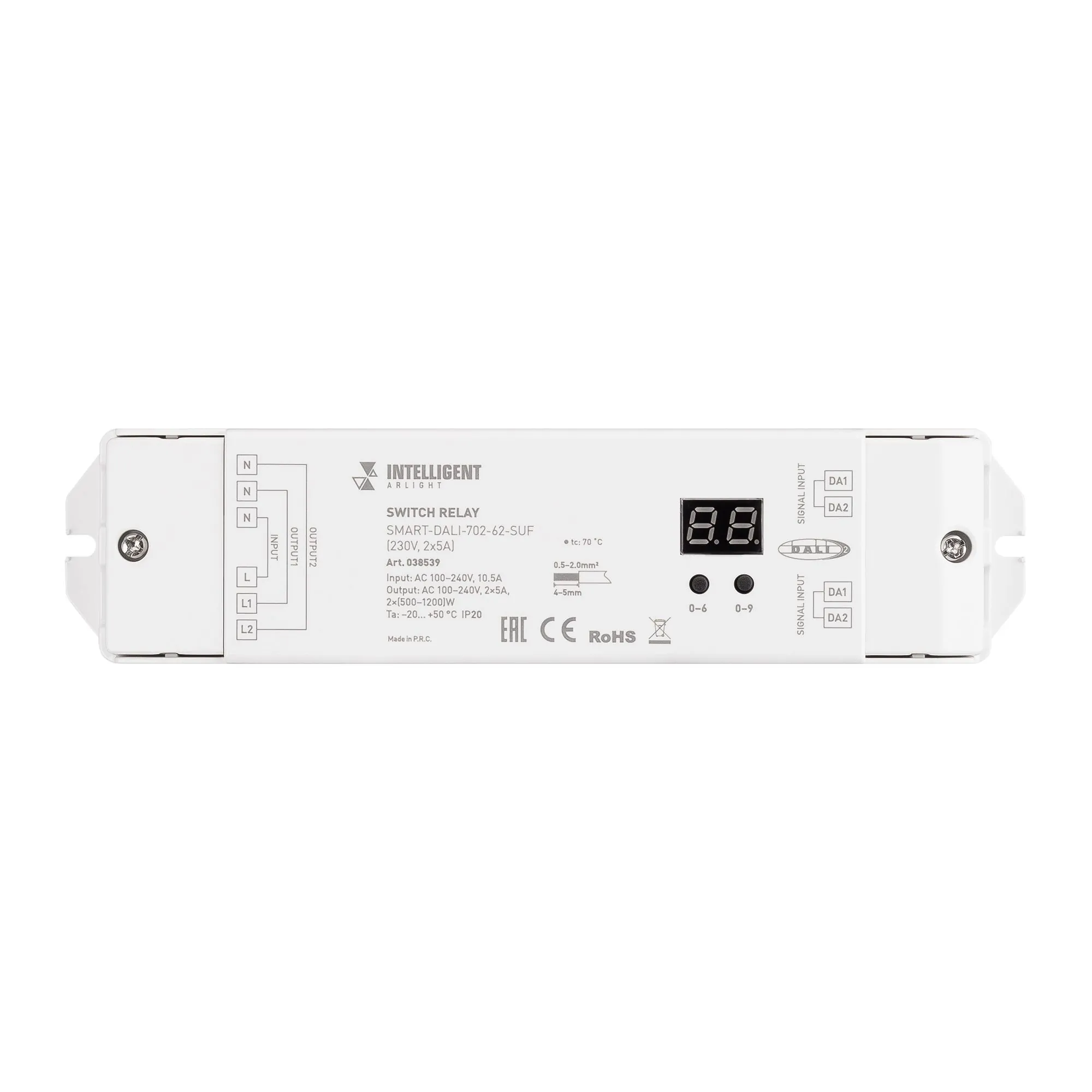 Arlight 038539 INTELLIGENT ARLIGHT Релейный модуль SMART-DALI-702-62-SUF (230V, 2x5A) (IARL, IP20 Пластик, 5 лет) - ! УПАКОВКА СОСТОИТ ИЗ - 1 шт