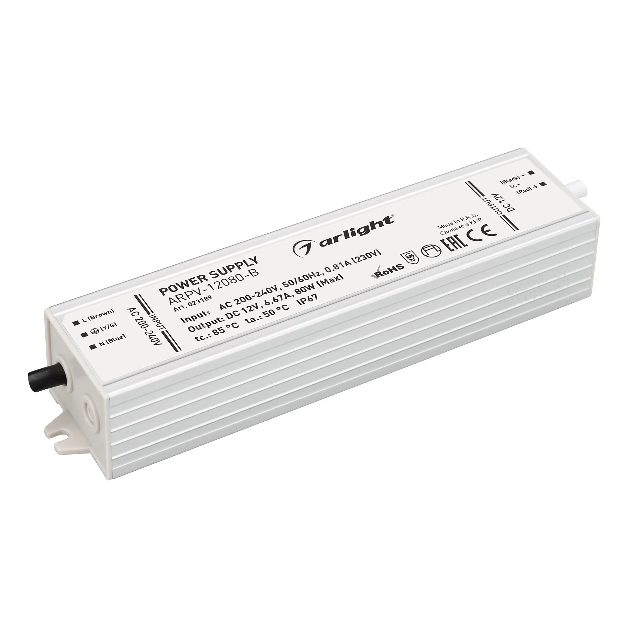 Arlight 023189 Блок питания ARPV-12080-B (12V, 6.7A, 80W) (Arlight, IP67 Металл, 3 года) - ! УПАКОВКА СОСТОИТ ИЗ - 1 шт