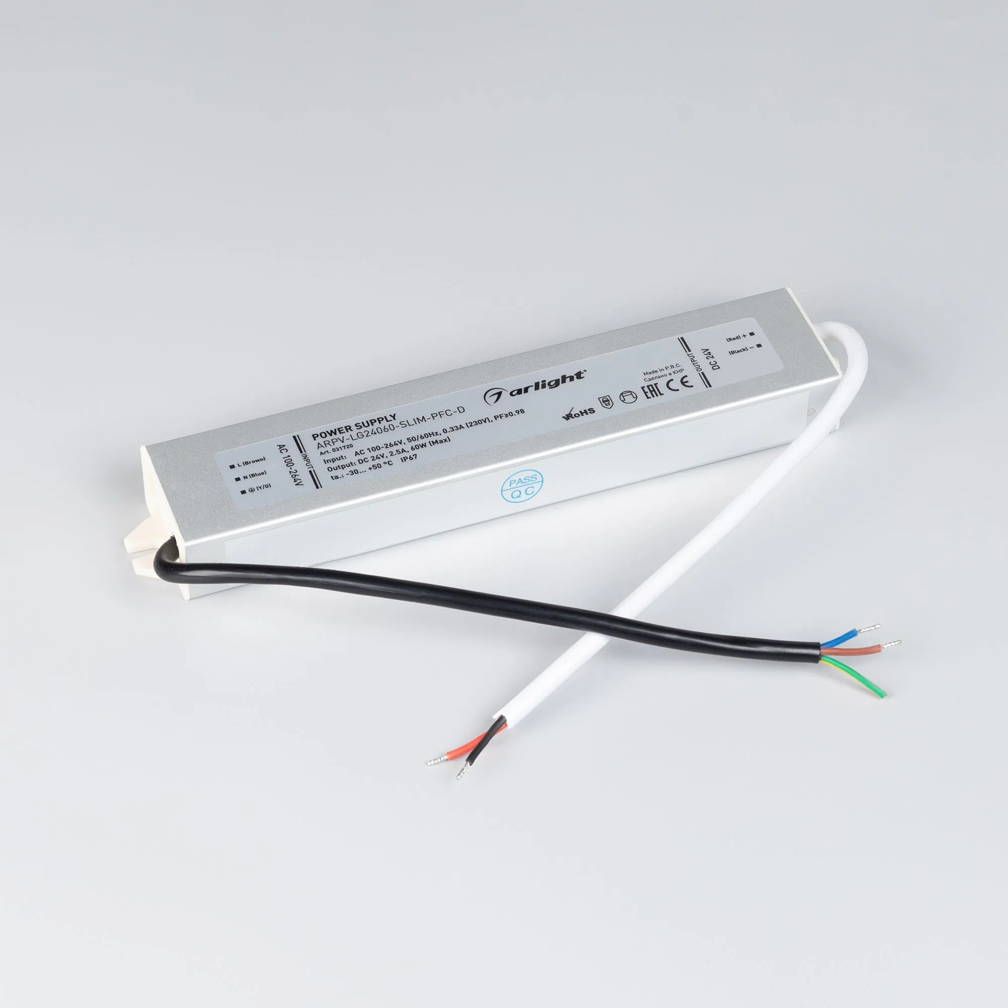 Arlight 031720 Блок питания ARPV-LG24060-SLIM-PFC-D (24V, 2.5A, 60W) (Arlight, IP67 Металл, 5 лет) - ! УПАКОВКА СОСТОИТ ИЗ - 1 шт