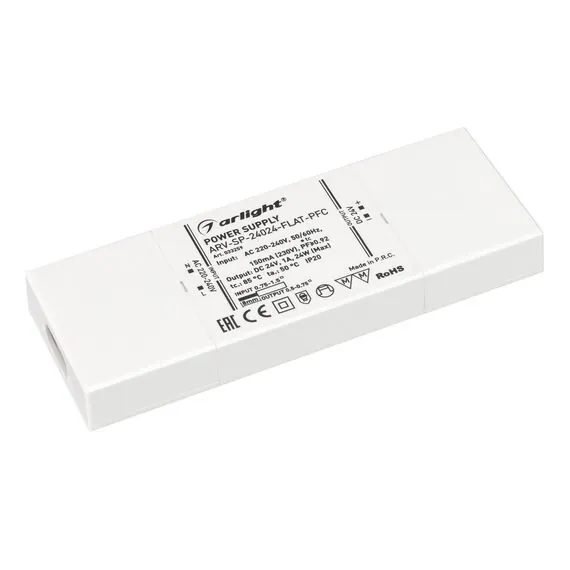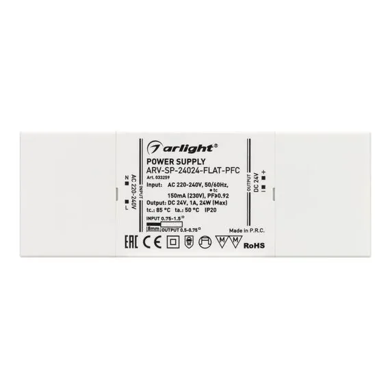 Arlight 033259 Блок питания ARV-SP-24024-FLAT-PFC (24V, 1A, 24W) (Arlight, IP20 Пластик, 5 лет) - ! УПАКОВКА СОСТОИТ ИЗ - 1 шт