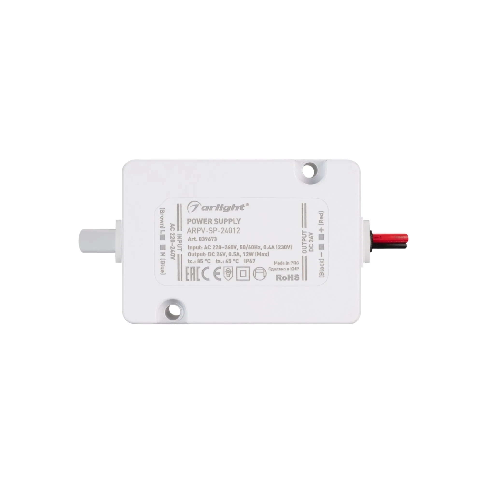 Arlight 039673 Блок питания ARPV-SP-24012 (24V, 0.5A, 12W) (Arlight, IP67 Пластик, 5 лет) - ! УПАКОВКА СОСТОИТ ИЗ - 1 шт