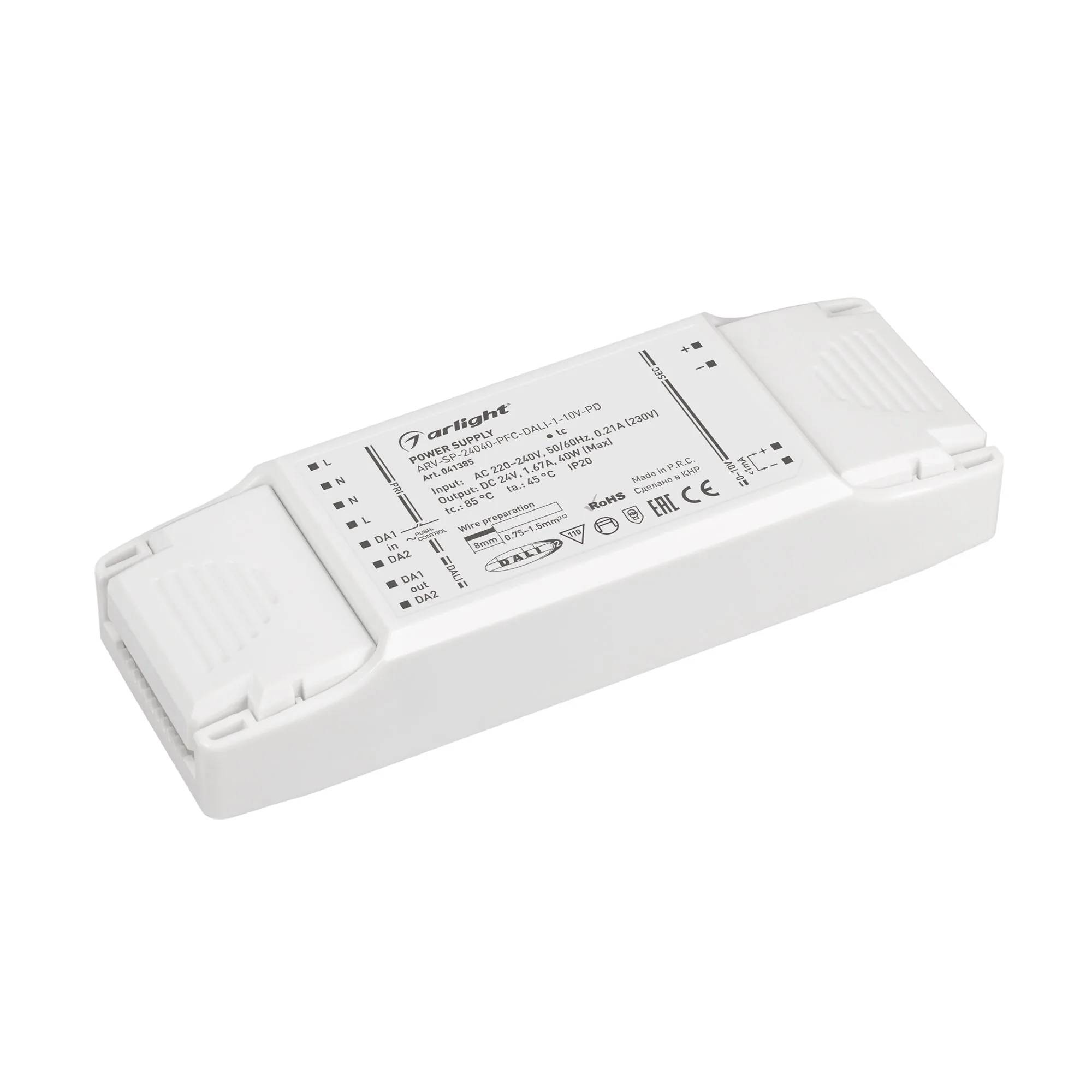Arlight 041385 Блок питания ARV-SP-24040-PFC-DALI-1-10V-PD (24V, 1.67A, 40W) (Arlight, IP20 Пластик, 5 лет) - ! УПАКОВКА СОСТОИТ ИЗ - 1 шт