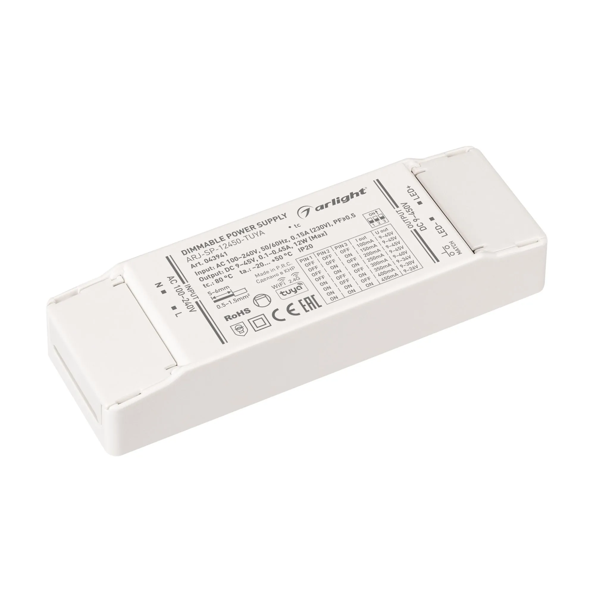 Arlight 043941 Блок питания ARJ-SP-12450-TUYA (12W, 9-45V, 0.1-0.45A, WiFi, 2.4G) (Arlight, IP20 Пластик, 5 лет) - ! УПАКОВКА СОСТОИТ ИЗ - 1 шт
