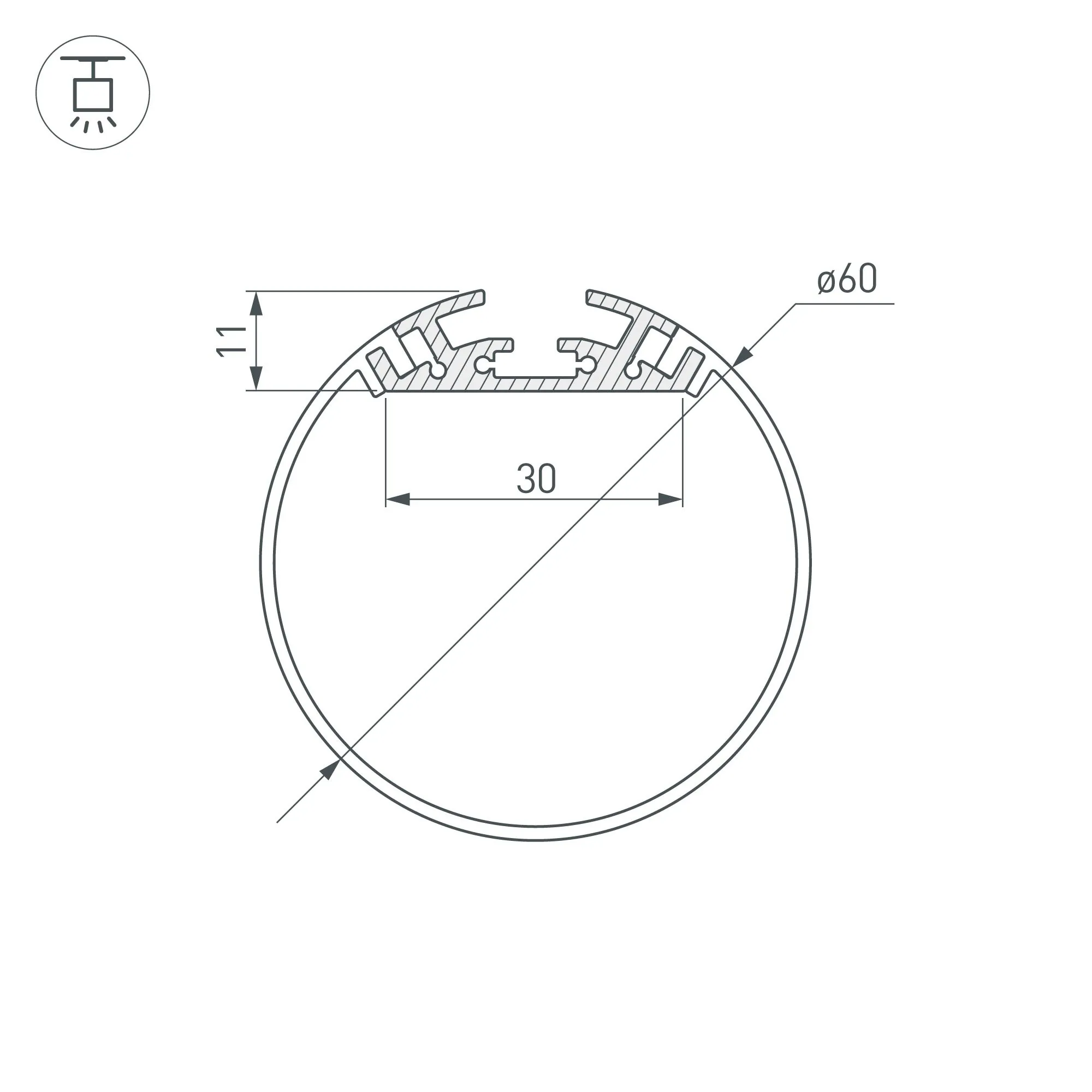 Arlight 020474 Профиль с экраном SL-ROUND-D60-2500 ANOD+OPAL (Arlight, Алюминий) - ! УПАКОВКА СОСТОИТ ИЗ - 1 компл