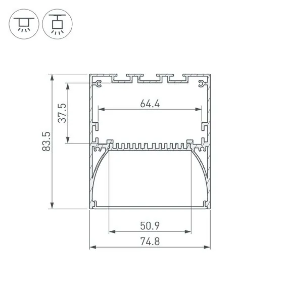 Arlight 036349 Профиль ARH-POWER-W75-2000 ANOD (Arlight, Алюминий) - ! УПАКОВКА СОСТОИТ ИЗ - 2 м/п