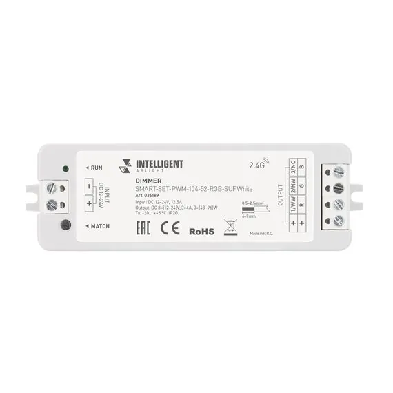 Arlight 036189 INTELLIGENT ARLIGHT Диммер SMART-SET-PWM-104-52-RGB-SUF White (12-24V, 3x4A, ПДУ LINE, 2.4G) (IARL, IP20 Пластик, 5 лет) - ! УПАКОВКА СОСТОИТ ИЗ - 1 шт