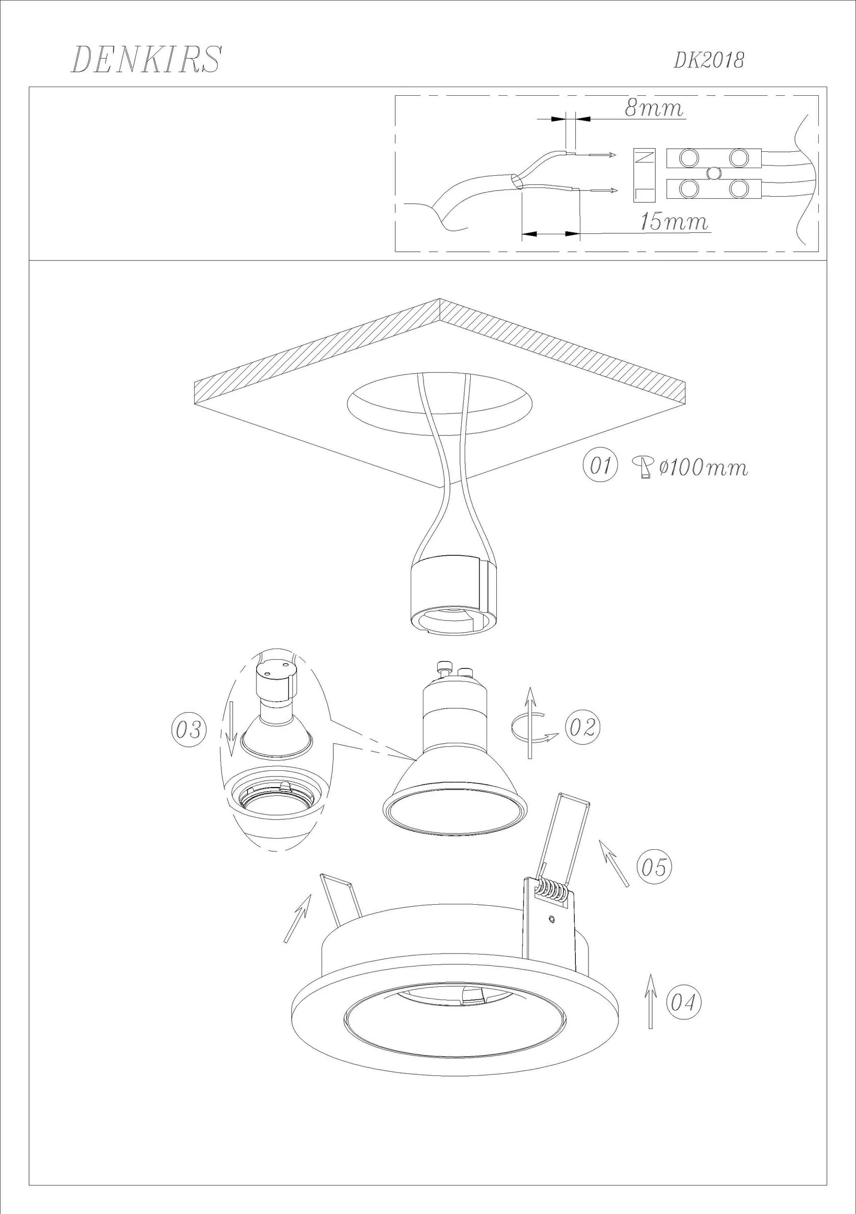 Denkirs DK2018-BK Встраиваемый светильник, IP 20, 50 Вт, GU10, черный, алюминий