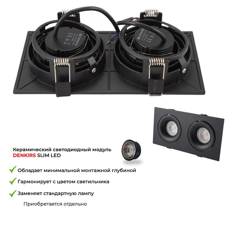 Denkirs DK2122-BK Встраиваемый светильник, IP 20, 50 Вт, GU10, черный, алюминий