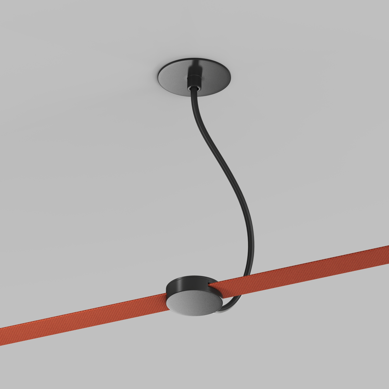 Denkirs TR5514-BK Встраиваемое основание с возможностью подачи питания треку-ремню Belty, серия Base. Не вмещает блок питания. D65мм, монтажный D50мм, коннектор на проводе, L200-1500мм, IP20, черный, алюминий