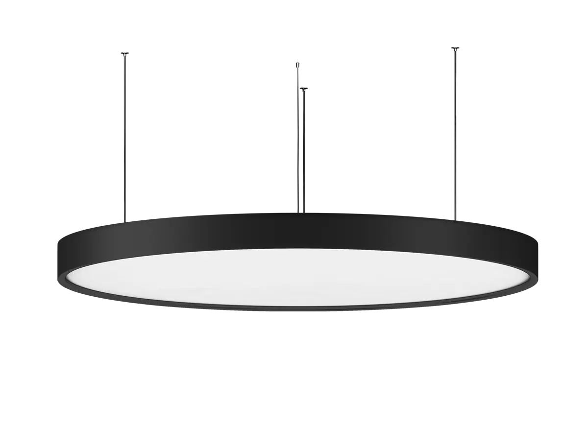 Donolux PLATO подвесной светодиодный светильник, 192 Ватта, 29472Lm, 3000К, IP20, D-1200мм. Н-90мм., черный RAL 9005, БП встроенный