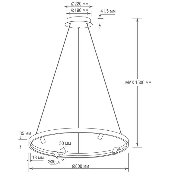 Серия тонких подвесных светильников кольцеобразной формы, сочетающих в себе изящество и функциональность. Подвесное кольцо толщиной всего 13 мм с установленными на нем светильниками-спотами диаметром всего 30 мм в стиле минимализм.
