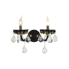 Donolux Classic бра двухрожковое, стекло черного цвета, подвески хрусталь K9, шир 43 см, выс 36 см, 2xE14 60W, фарфор черного цвета с позолотой