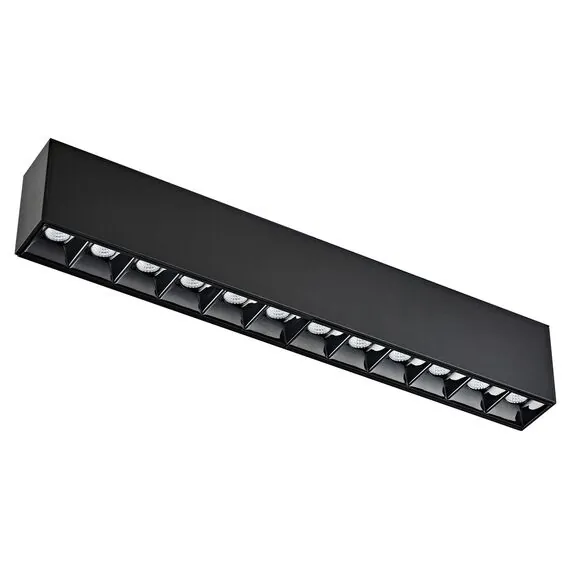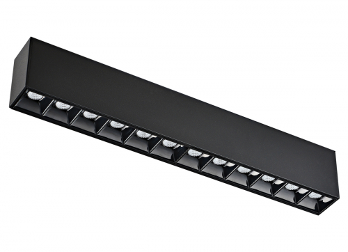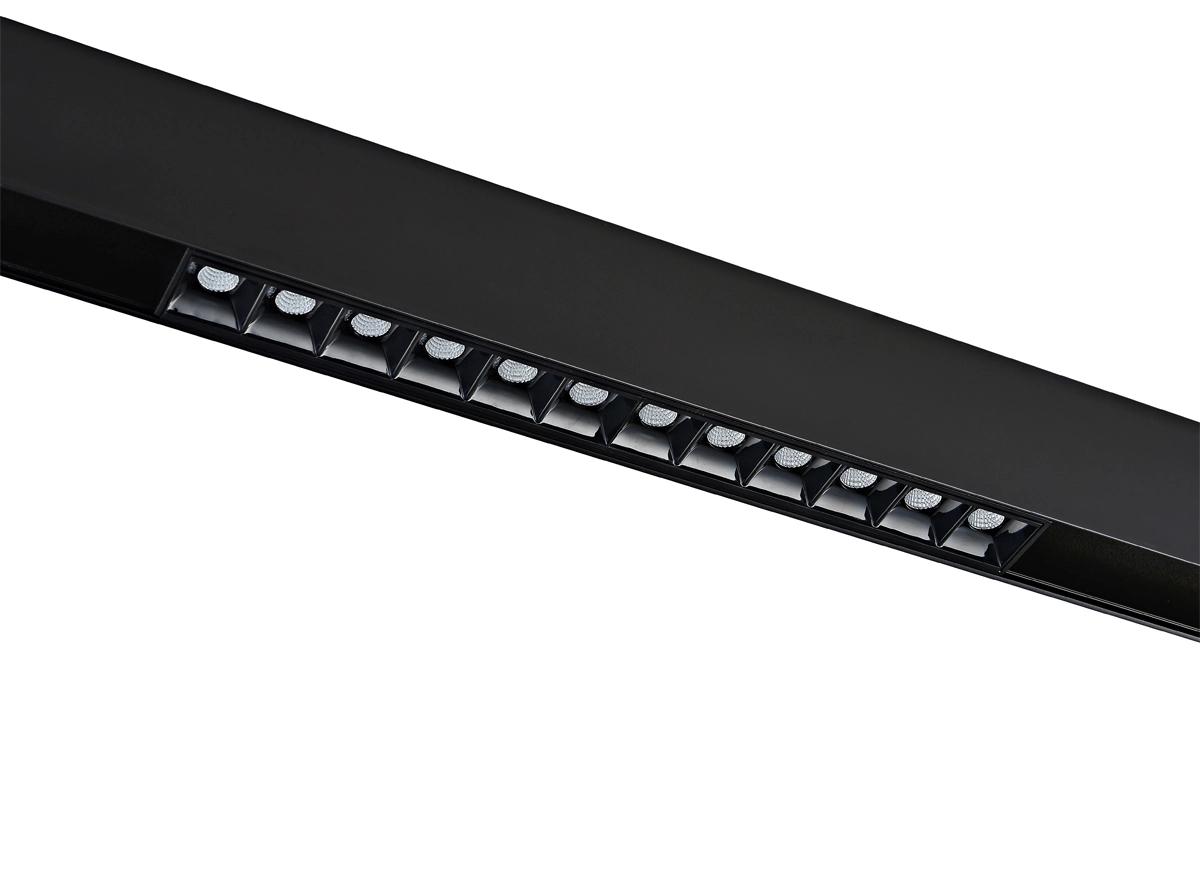 Источник света в виде рефлектора изготовлен из черного глянцевого пластика. Конструкция рефлектора подавляет блики, а зеркальная поверхность отражателя многократно увеличивает светоотдачу. Светильник целиком утапливается в корпус магнитной шины. Дает направленный теплый свет. Корпус изготовлен из алюминия. Опционально: управление по протоколу DALI.