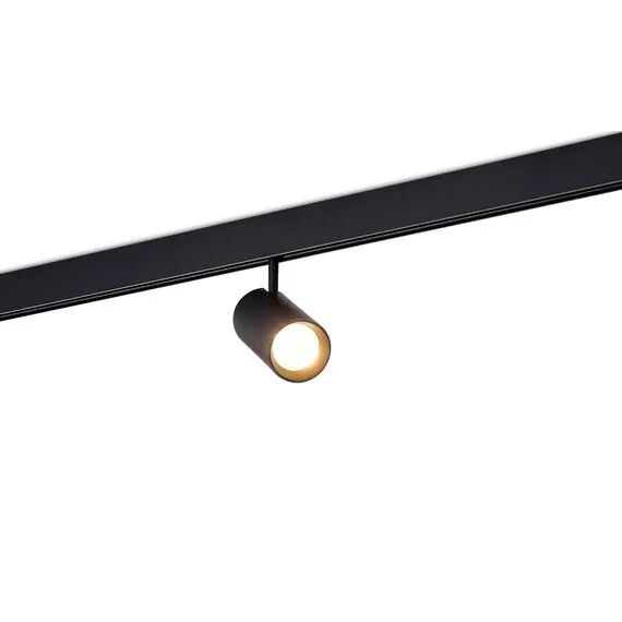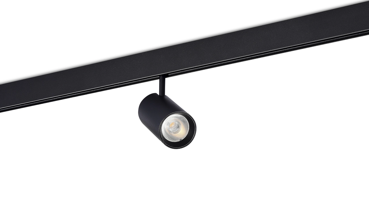 Donolux Led св-к для Slim Line, Alpha, DC 48В 15Вт, D55xL115 мм, 1450Лм, 36°, 3000К, недиммируемый, IP20, Ra>90, черныйМагнитная трековая система c шириной видимой части трека всего 13 мм. Выглядит на потолке тонкой линией, глубина монтажа 41 мм. Варианты монтажа: подвесной, накладной, встраиваемый в гипсокартон либо натяжной потолок. Трек может быть разрезан в любом месте, как прямо так и под углом 45°, что позволяет создавать прямоугольные конструкции на потолке. Поставляется кратно 2,5 м. Питание 48V DC. Изящный дизайн, широкий ассортимент светильников и доступная цена делают систему Slim Line хитом продаж!