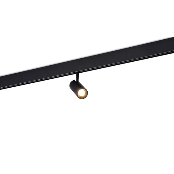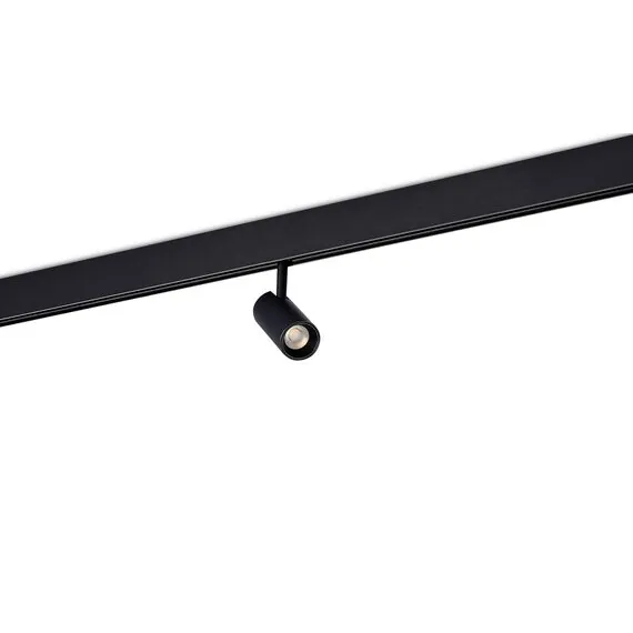 Donolux Led св-к для Slim Line, Alpha, DC 48В 5Вт, D35xL80 мм, 360Лм, 36°, 3000К, недиммируемый, IP20, Ra>90, черныйМагнитная трековая система c шириной видимой части трека всего 13 мм. Выглядит на потолке тонкой линией, глубина монтажа 41 мм. Варианты монтажа: подвесной, накладной, встраиваемый в гипсокартон либо натяжной потолок. Трек может быть разрезан в любом месте, как прямо так и под углом 45°, что позволяет создавать прямоугольные конструкции на потолке. Поставляется кратно 2,5 м. Питание 48V DC. Изящный дизайн, широкий ассортимент светильников и доступная цена делают систему Slim Line хитом продаж!