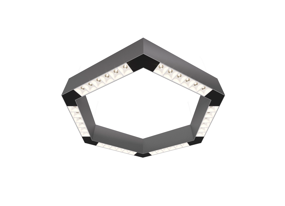 Donolux LED Eye-hex св-к накладной, 36W, 500х433мм, H71,5мм, 2700Lm, 34°, 3000К, IP20, корпус алюминий, белые модули, черный декор, блок питания AC/DC 24V в комплекте