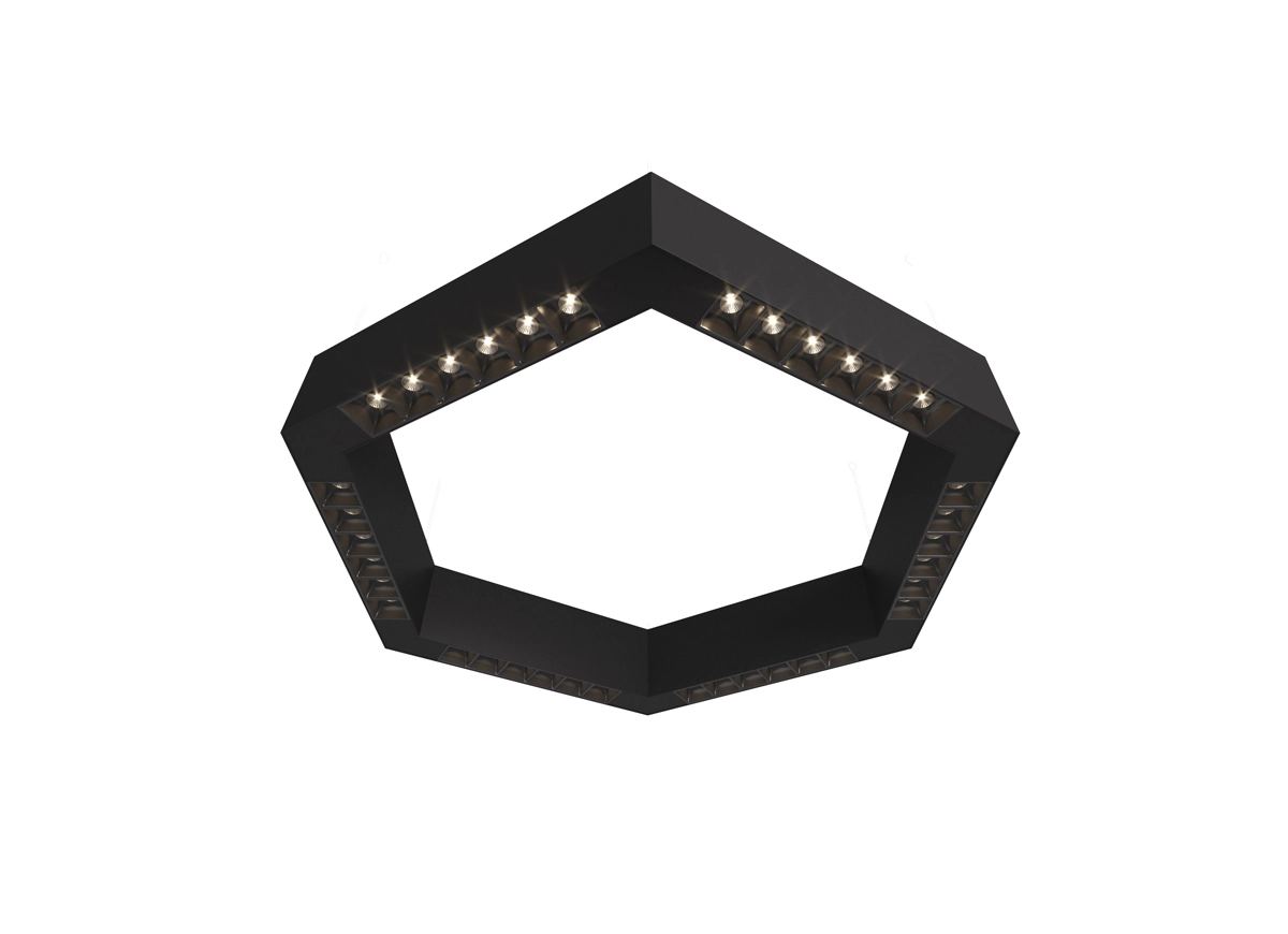 Donolux LED Eye-hex св-к накладной, 36W, 500х433мм, H71,5мм, 2560Lm, 48°, 3000К, IP20, корпус черный, черные модули, черный декор, блок питания AC/DC 24V в комплекте