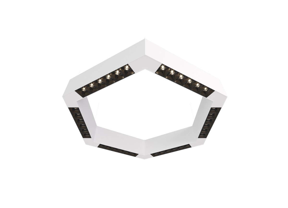 Donolux LED Eye-hex св-к накладной, 36W, 500х433мм, H71,5мм, 2700Lm, 34°, 3000К, IP20, корпус белый, черные модули, белый декор, блок питания AC/DC 24V в комплекте