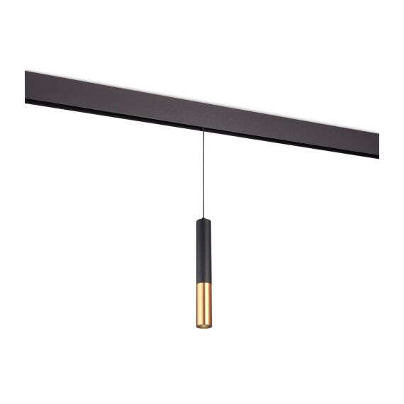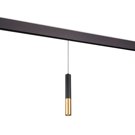 Тонкий подвесной светильник в виде комбинированного тубуса, в отделке используется золотое гальваническое покрытие. Дает направленный свет, угол рассеивания 36°. Длина подвеса регулируется до 1000 мм. Опционально: управление по Bluetooth или DALI.