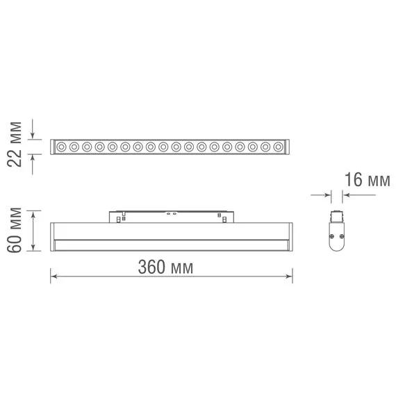 Donolux Led св-к для SPACE-Track system, Eye, DC 48В 18Вт, L360xW22xH40 мм, 1060Лм, 36°, 3000К, недиммируемый, угол поворота 170°, IP20, Ra>90, черный