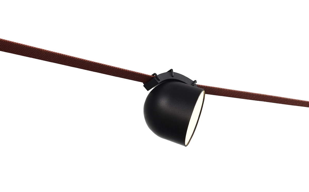 Система Sling System от Donolux ® – это конструктор освещения на основе гибкой текстильной токопередающей ленты, которая закрепляется или растягивается в помещении с помощью различных крепежных элементов. Светильники устанавливаются непосредственно на хлопковую ленту с помощью специальных зажимных клемм, через которые к ним подается питание.