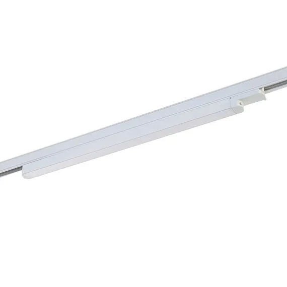 Линейный светильник для трехфазной шины. Источник света закрыт белым рассеивателем из поликарбоната. Дает яркий рассеянный свет. Корпус изготовлен из алюминия. Цвет корпуса белый.