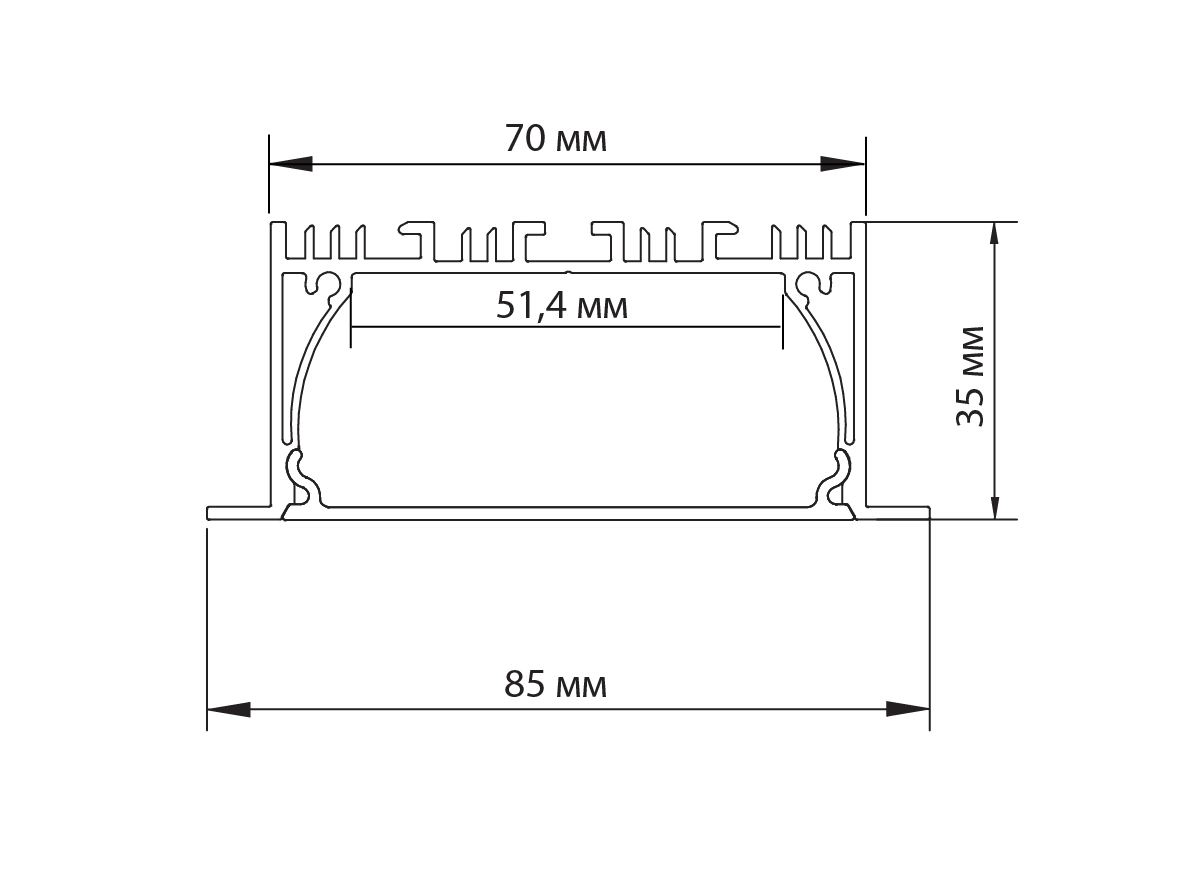 Donolux DN18512RAL9005 Врезной алюминиевый профиль, 85х35х2000. Цвет: Черный матовый, RAL9005,Серия:DN8ALE