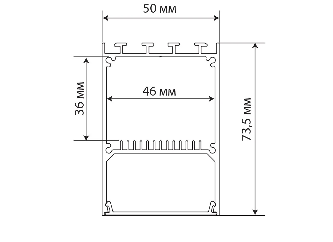 Donel,Накладной/подвесной алюминиевый профиль, 50х73,5х6000. Цвет: черный RAL9005,серия:DN8HF