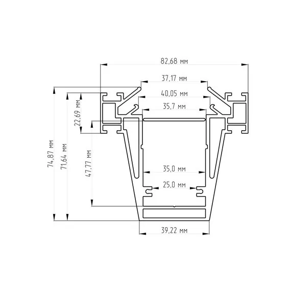 Donel, встраиваемый алюминиевый профиль 3в1 под натяжной потолок, 75х82,5х2000. Цвет:Серебро,Серия:DN8ALE