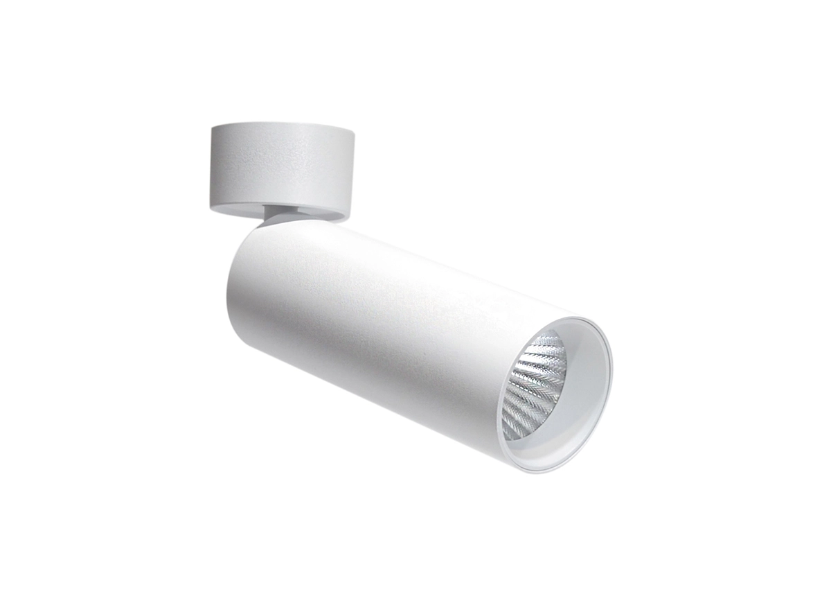 Светильник в виде тубуса. Источник света светодиодный. Корпус светильника изготовлен из алюминия. Цвет корпуса белый.