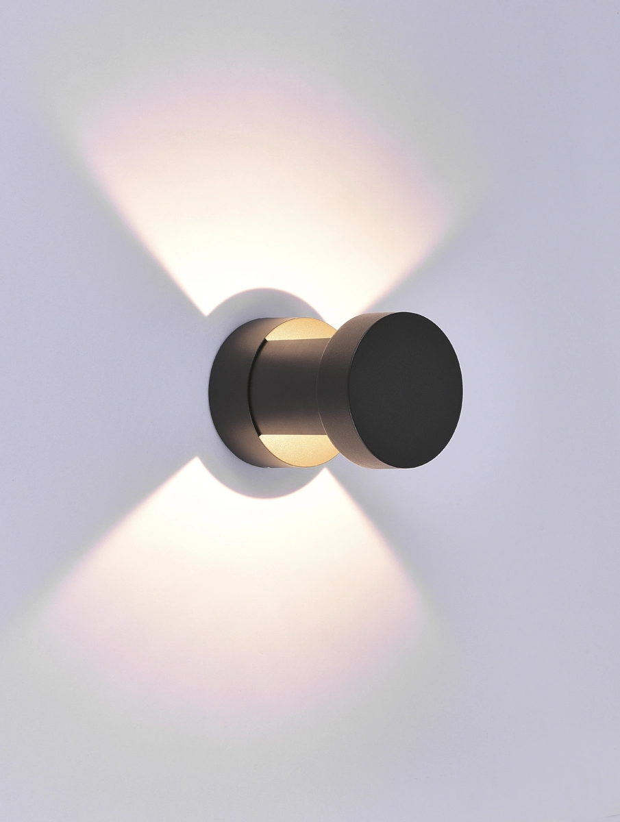 Donolux DOT Светодиодный св-к, настенный, 9Вт, 3000К, 180Лм, IP54, AC 220В, D108xW150xH108 мм, 50°, Ra>80, темно-серый, блок питания в комплекте