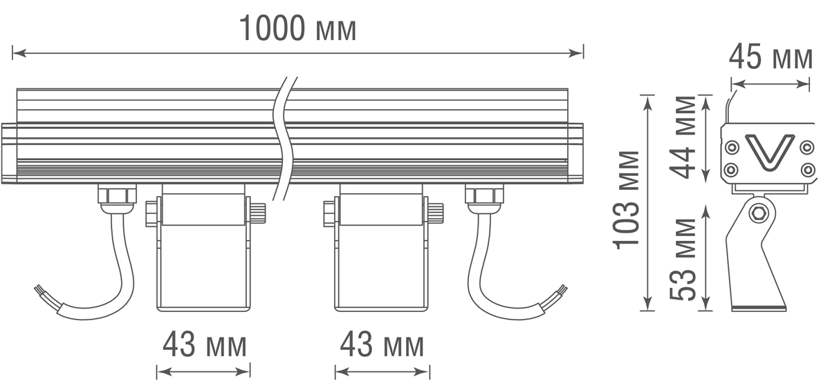 Donolux EYE Светодиодный св-к, 18Вт, 3000К, 1054Лм, IP65, DC 24В, L1000xW45xH28 мм, 15*40°, Ra>80, темно-серый, блок питания в комплект не входит