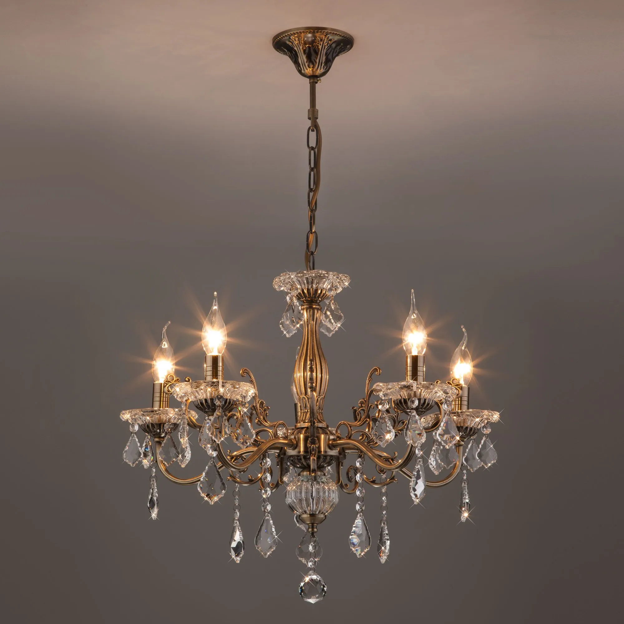 Eurosvet 00000063378 3281/5 Подвесной светильник античная бронза/прозрачный хрусталь Strotskis