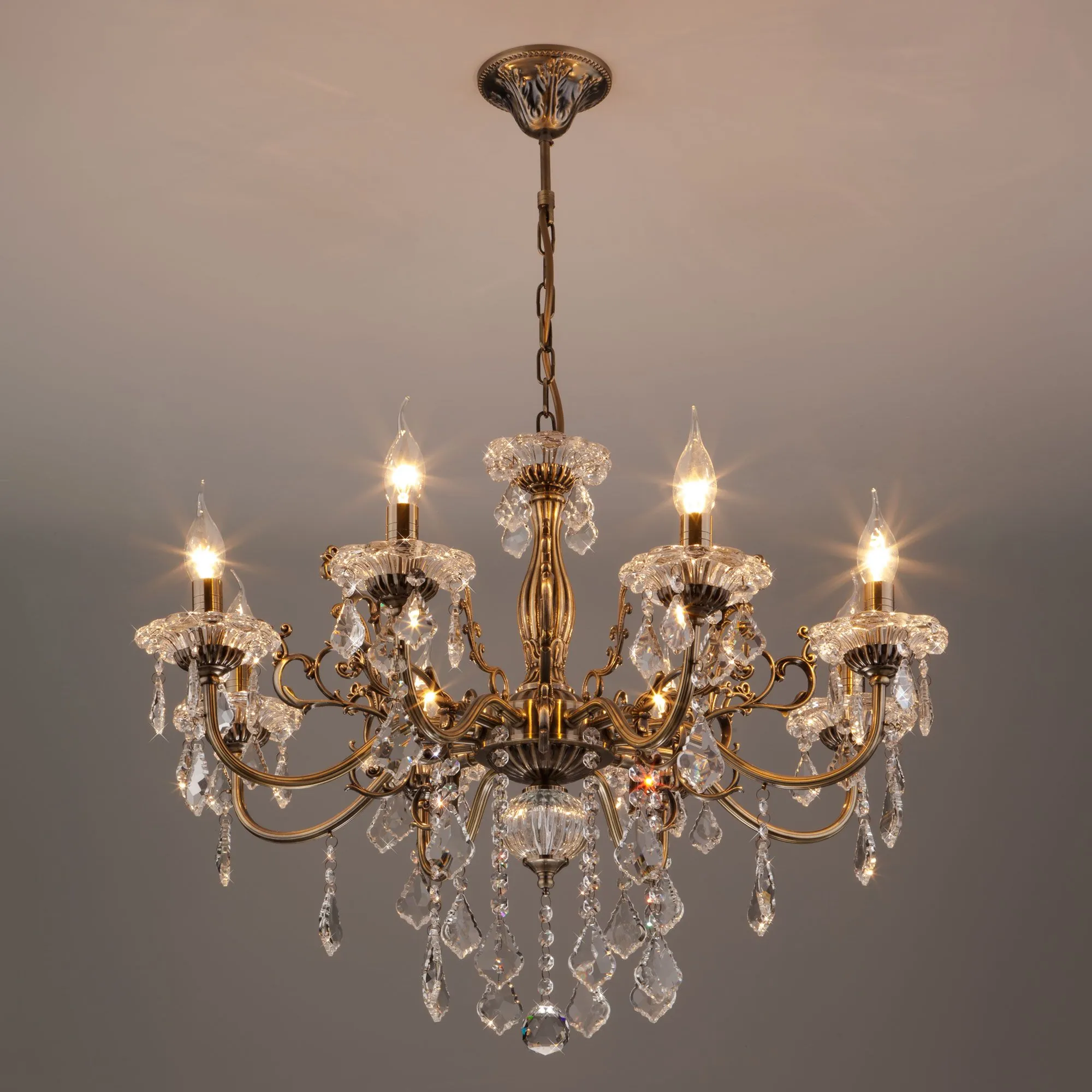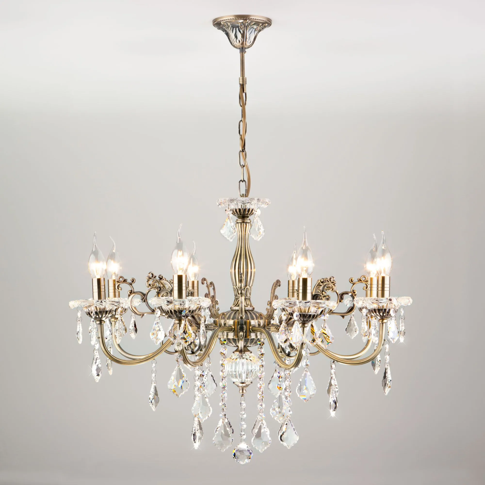Eurosvet 00000063379 3281/8 Подвесной светильник античная бронза/прозрачный хрусталь Strotskis