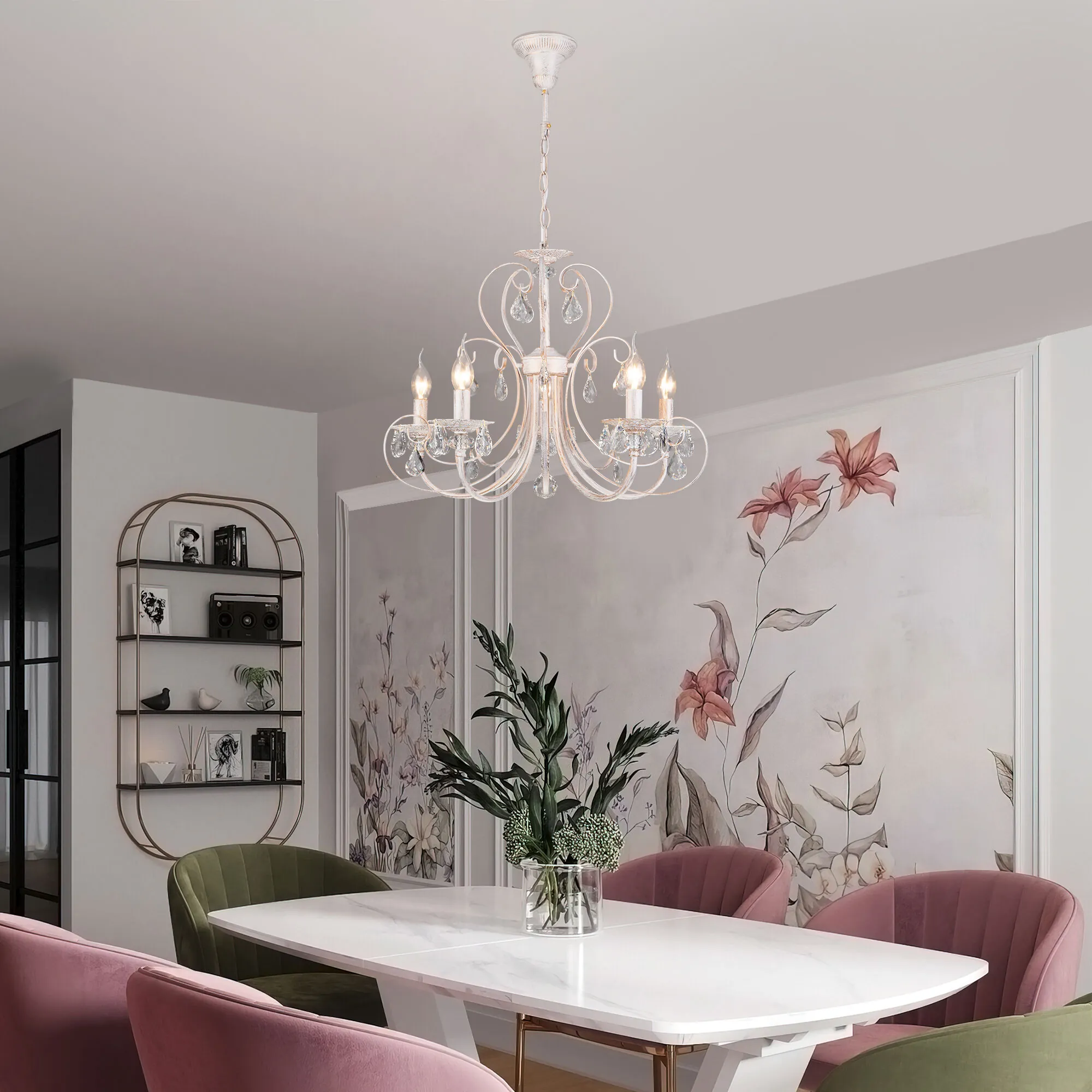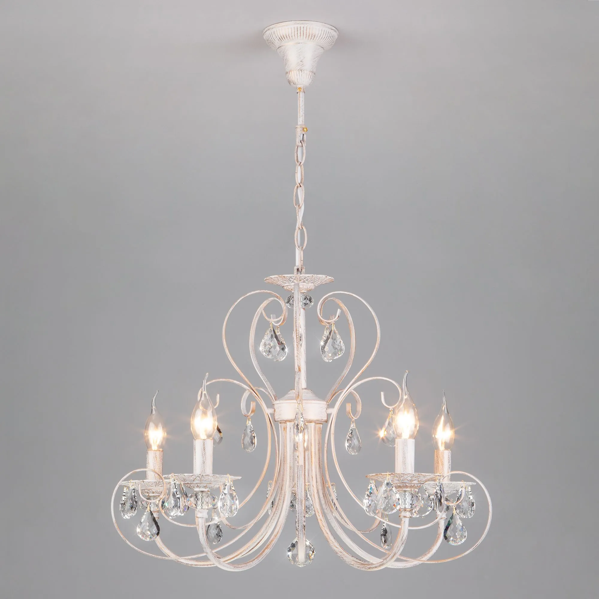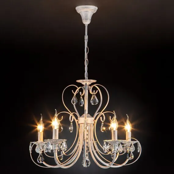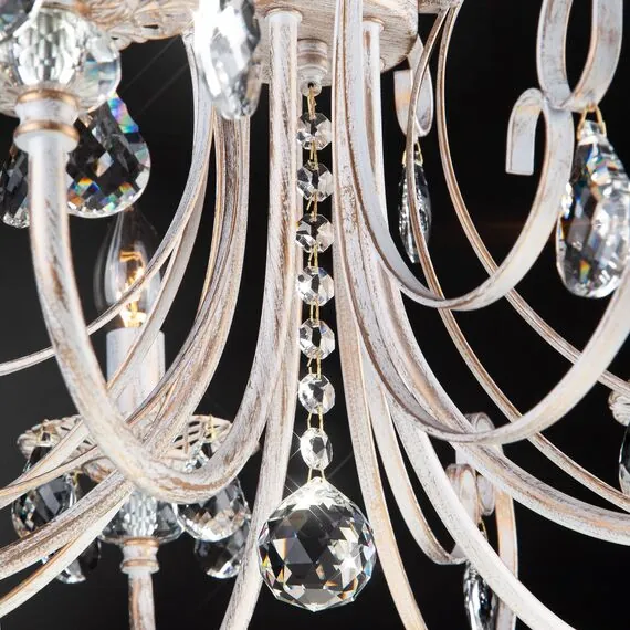 Eurosvet 00000063411 3305/5 Подвесной светильник белый с золотом/прозрачный хрусталь Strotskis