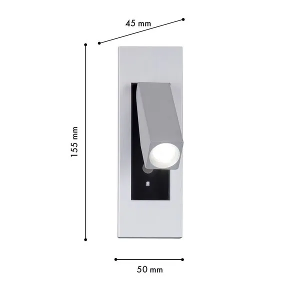 Favourite 4282-1W, настенный светильник, D45xW50xH155, cutout:L40xW50xH143, LEDx3W, 150LM, 4000K, included, switch