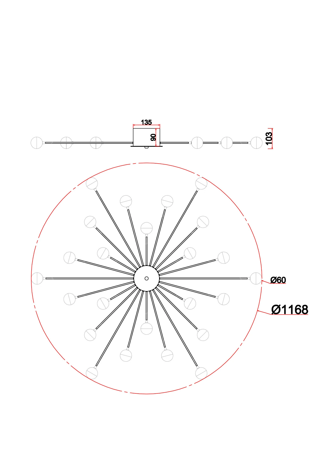 Диаметр потолочной чаши, мм