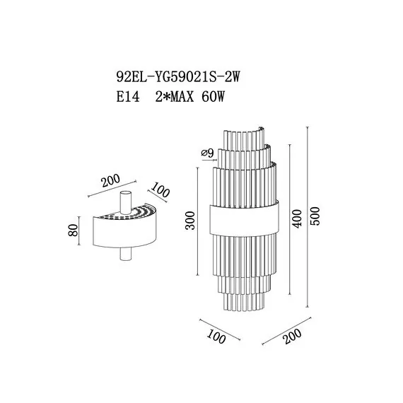 Garda Decor 92EL-YG59021S-2W Бра хром, стекло прозр. 20*10*h.50см