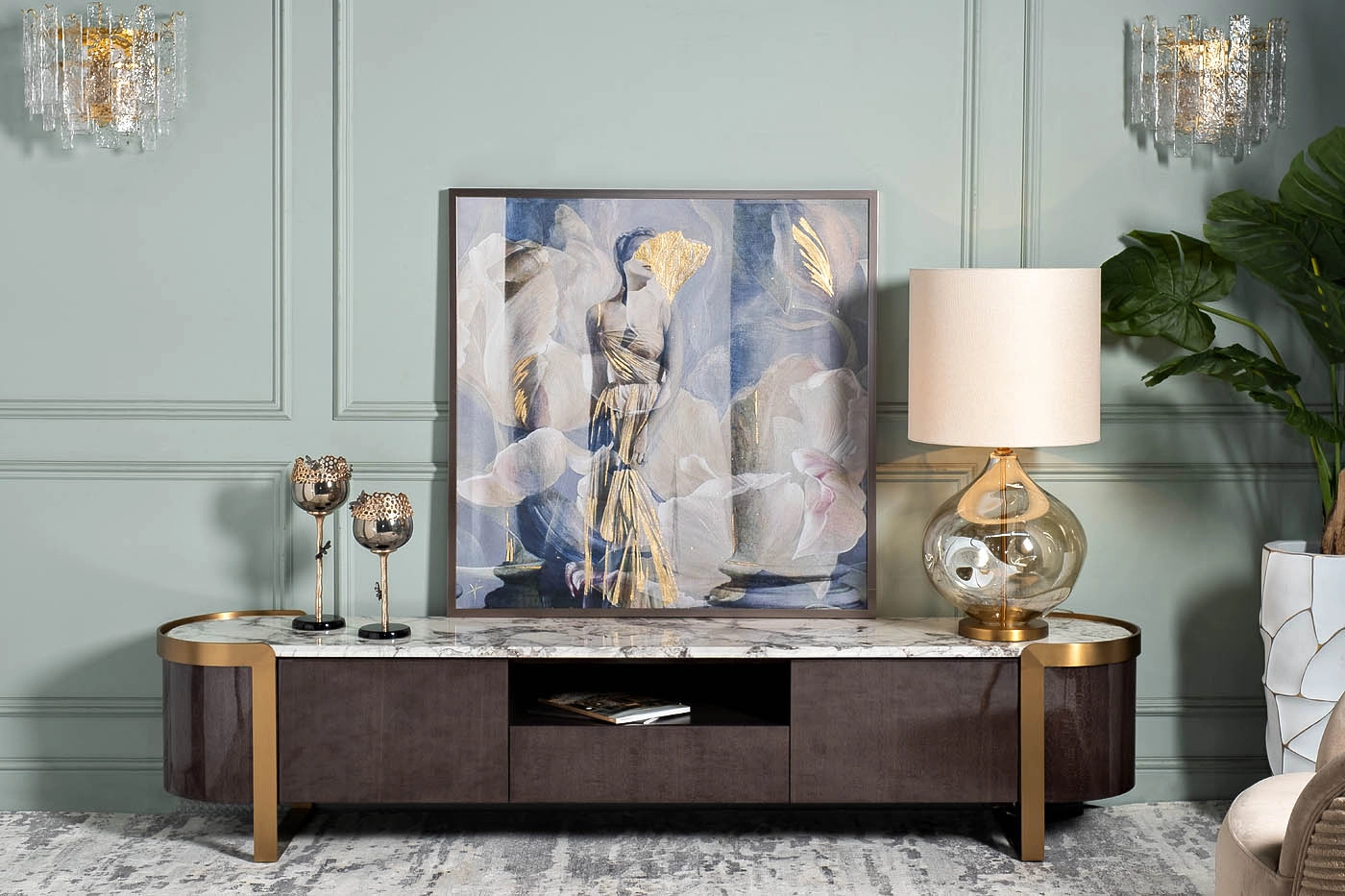 Прозрачное стекло, металл цвета латунь