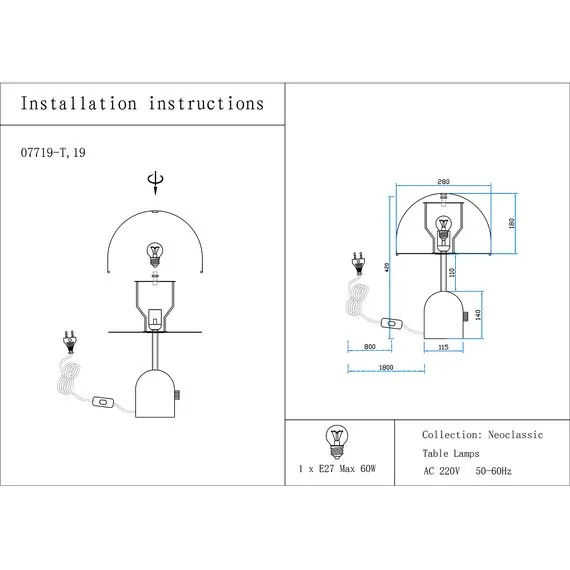 Kink Light 07719-T,19 Настольная лампа Гент черный d28 h47 E27 1*40W