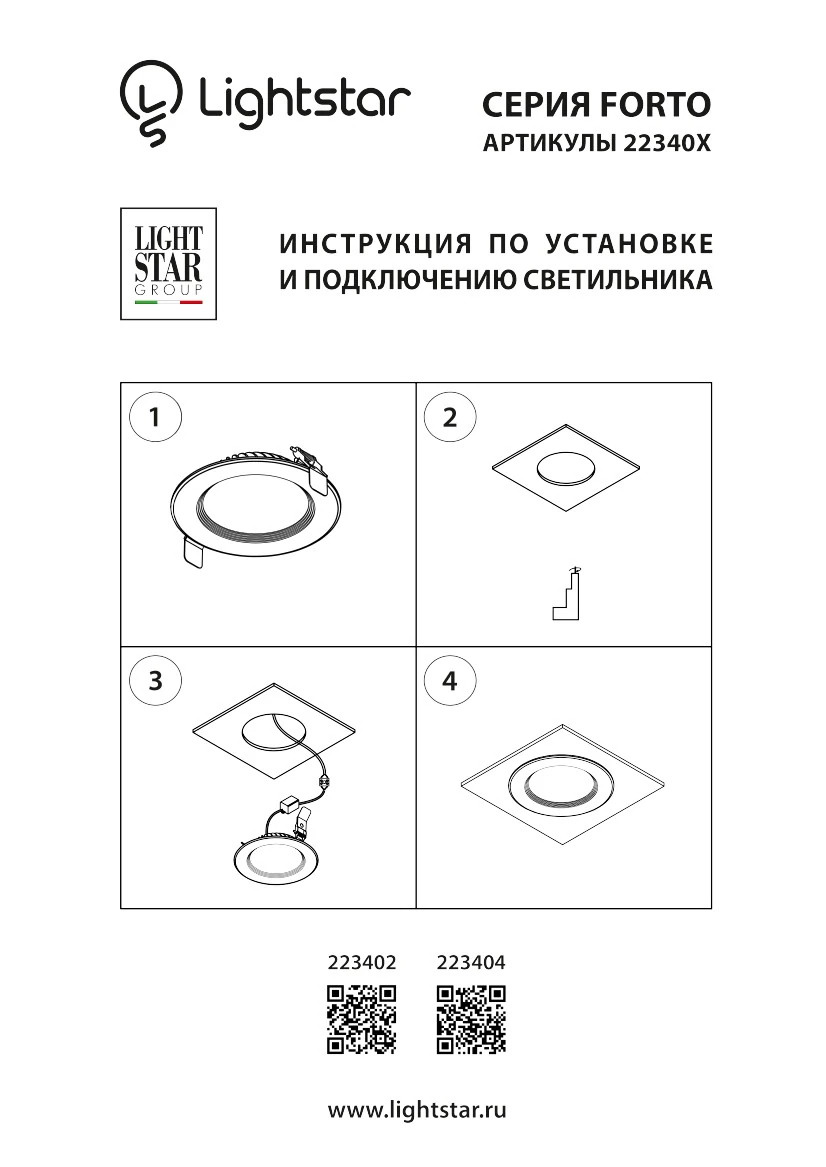Lightstar 223402 Светильник FORTO LED 40W 3600LM 120G 3000K