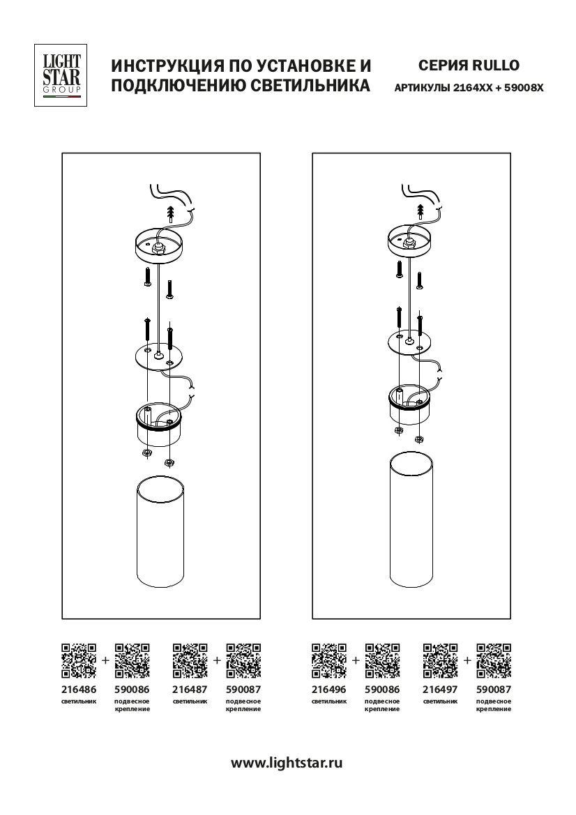 Lightstar 590086 Подвесное крепление RULLO для светильников 2164XX БЕЛЫЙ