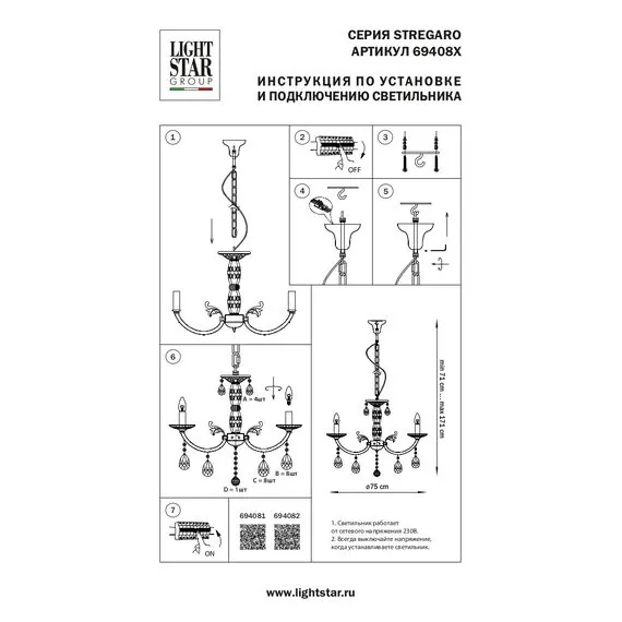 Lightstar 694082 Люстра подв STREGARO 8х60W E14 ЗОЛОТО