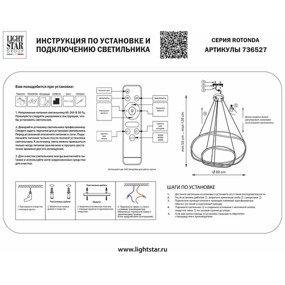 Lightstar 736527 Люстра ROTONDA 115W LED 5736LM 120G ЧЕРНЫЙ 3000-6000K