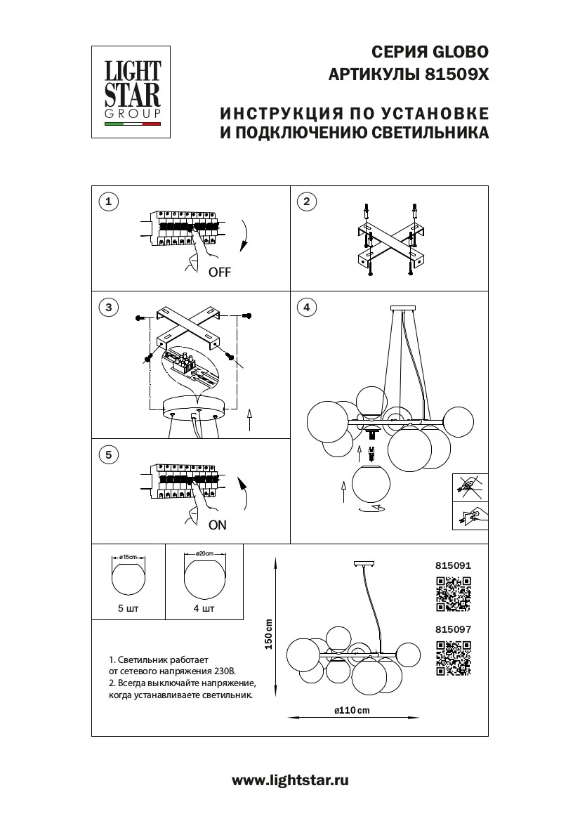 Lightstar 815097 Люстра GLOBO 9х40W G9 МАТОВЫЙ ЧЕРНЫЙ