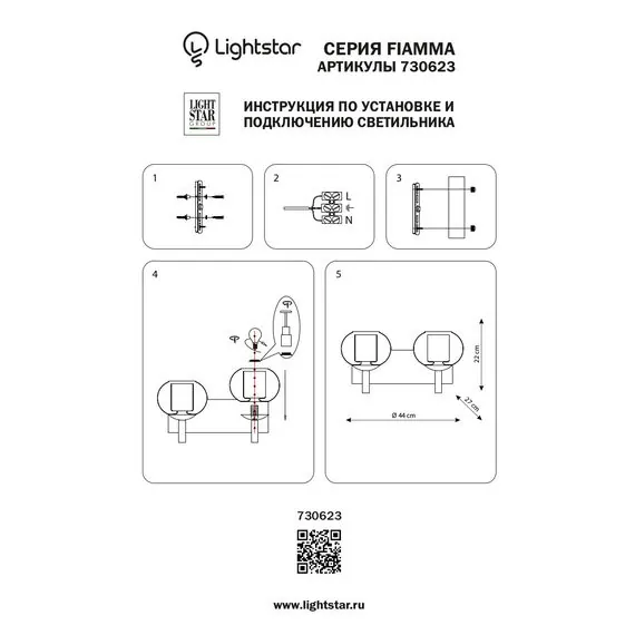 Lightstar 730623 Бра FIAMMA 2х40W E27 ЗОЛОТО/ПРОЗРАЧНЫЙ